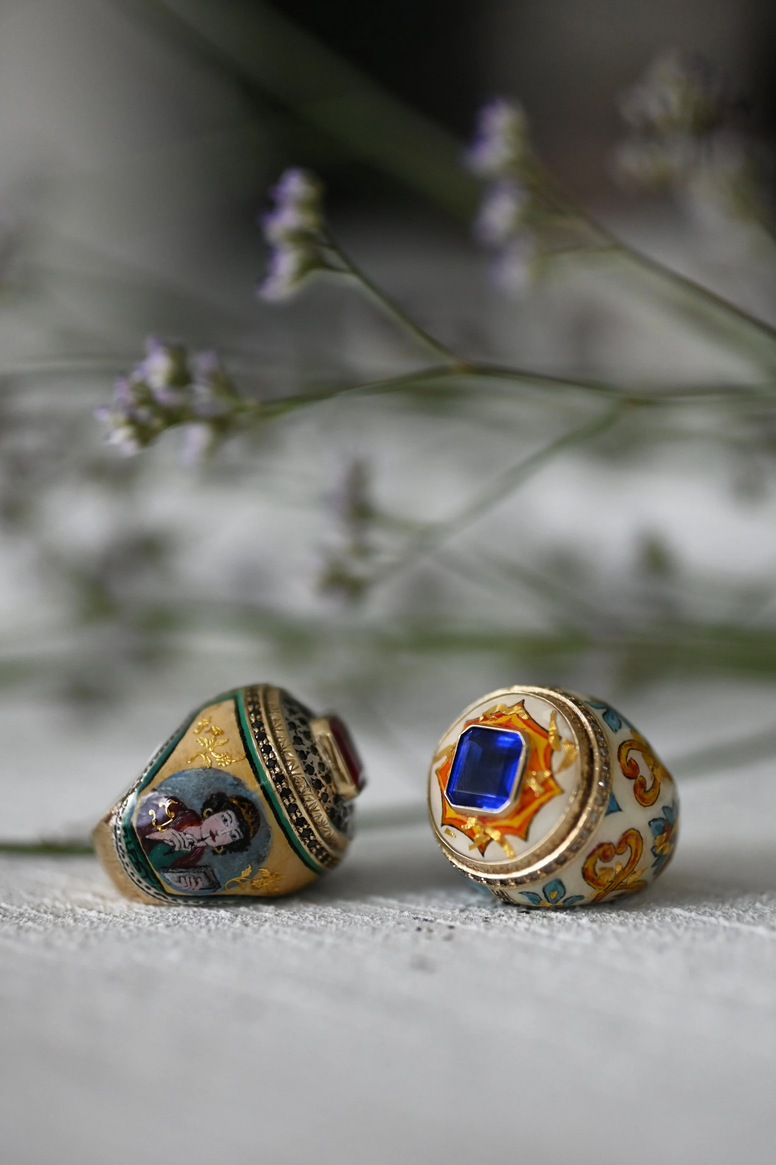Anello Capri, oro, argento, smalto a freddo e paglioni oro zecchino